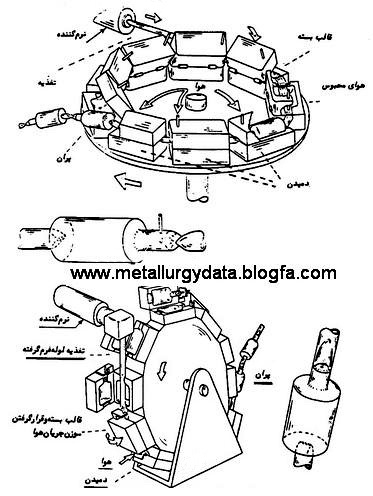 ماشين هاي دوار که محفظه ي قالب هاي آن روي يک ميز عمودي يا يک چرخ افقي قرار دارند براي توليد با سرعت بسيار بالا مورد استفاده قرار مي گيرند.