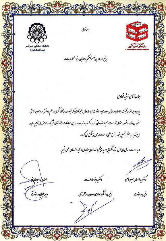 تبریک مقام دومی مسابقات ملی سازه های لحیم کاری
